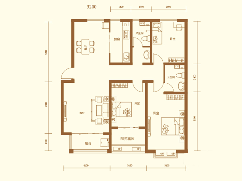 地润新城3室2厅1厨2卫 总价待定