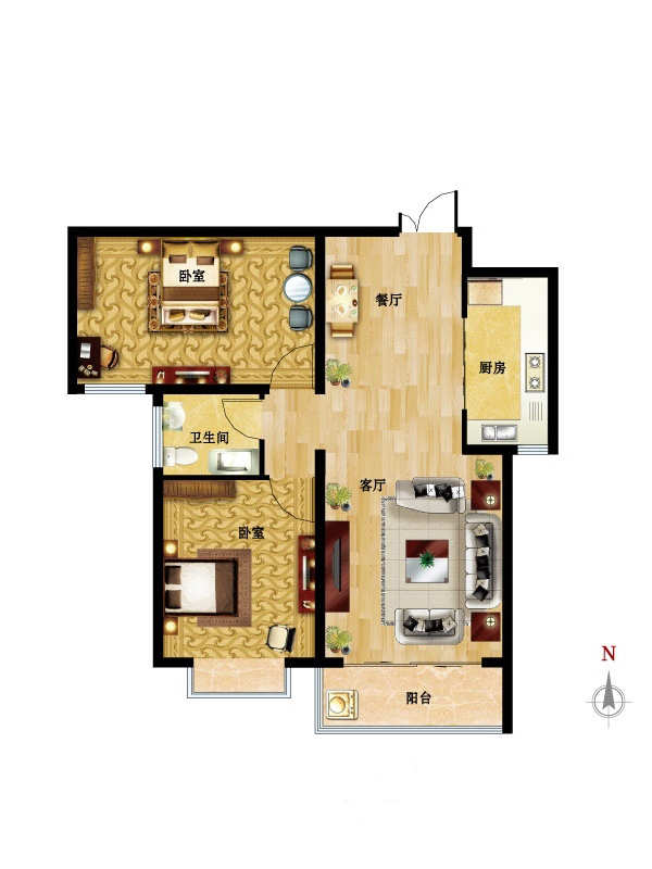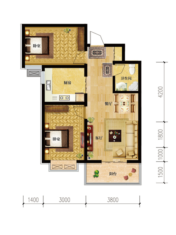 国风2室2厅1厨1卫 总价待定