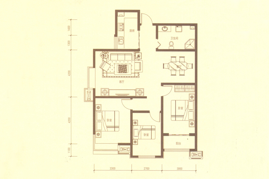 各个空间户型方正,方便室内家具布置;客厅、主卧非南向或东向,居室采光一般;户型不是南北通透,后期装修时可以考虑加装纱门改善通风;卫生间如没有窗子,可加管道通风,但是相对来说卫生间有窗户是好的情况,利于排湿,不会使湿气进到室内。居室布局合理,通风良好,动静分离,兼顾到了卧室和卫生间的私密性;卧室厨卫等