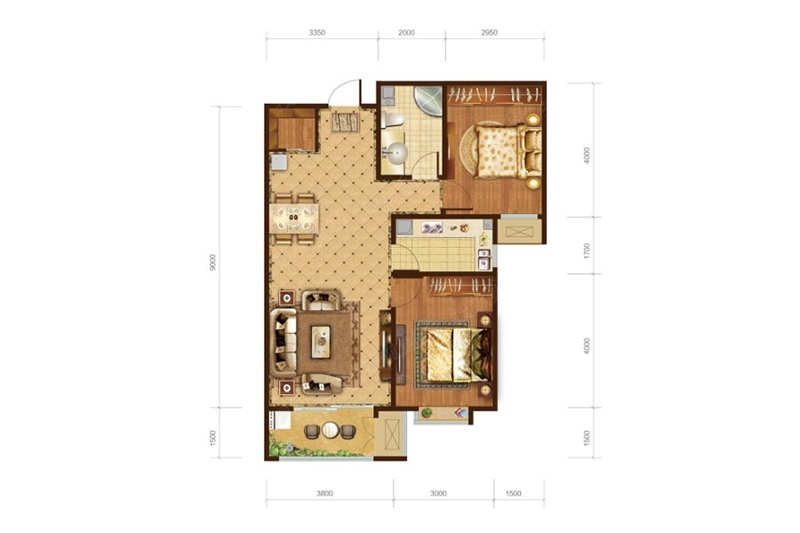 卧室:卧室位于静区,两个南向大卧室。 卫生间:客卫干湿分离设计,使用方便。 客厅:5.2米超大开间,宽绰气派。 阳台:入户花园设计,提升居住品质。