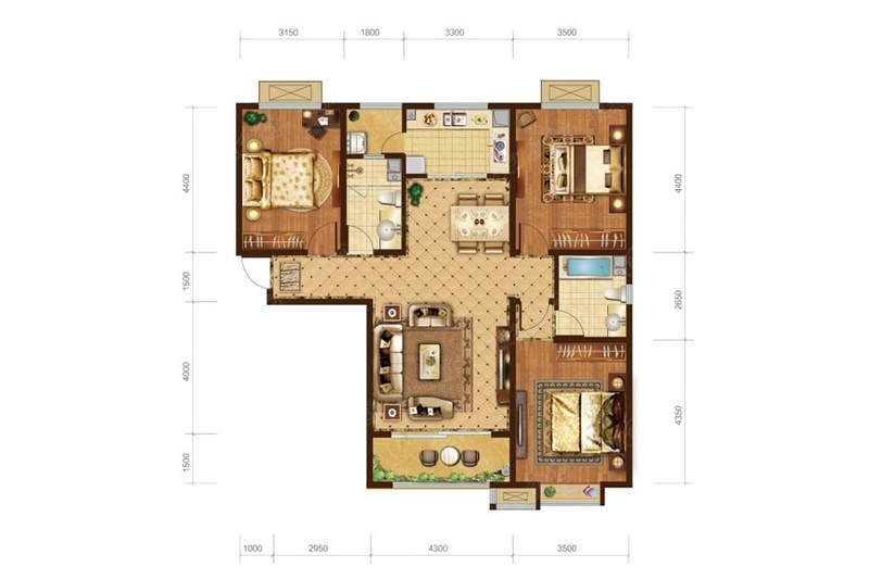 卧室:主卧带独立卫生间及飘窗,居住舒适。 卫生间:双明卫设计,便于通风换气。 客厅:4.3米开间,采光明亮,格局方正。 餐厅:餐厅紧邻厨房,就餐十分方便。