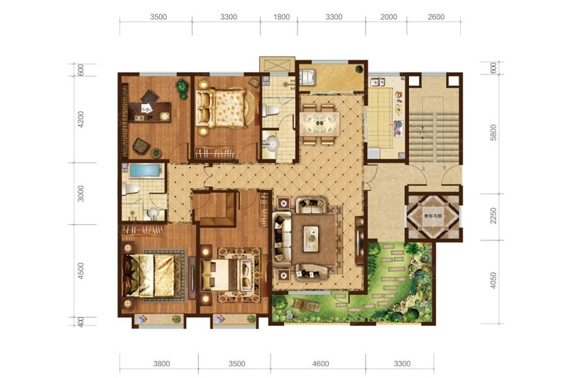 卧室:主卧套房设计,位于静区,居住舒适。 花园:超大面积私有花园,提升居住品质。 客厅:4.6米超大开间,气派亮堂,彰显主人身份。 餐厅:紧邻厨房,就餐传菜十分方便。