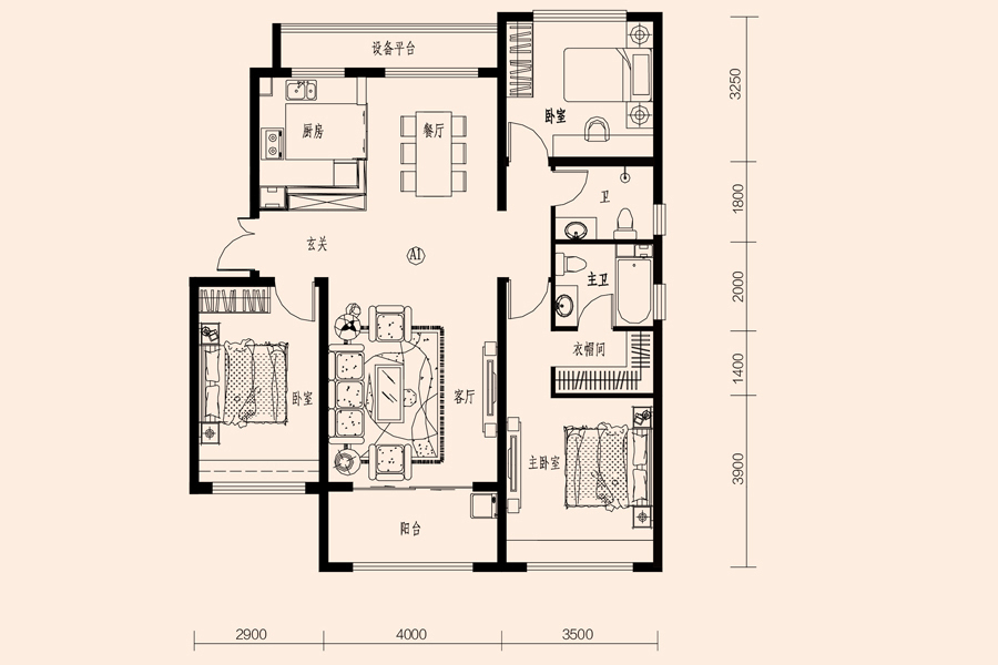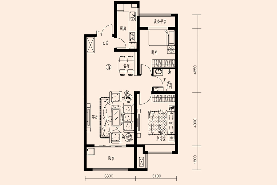 各个空间户型方正,后期空间利用率高;全明通透户型,居住舒适度较高,整个空间采光充足,利于后期居住;卧室进卫生间需要穿过餐厅或客厅;卫生间门朝向主要活动区域;。客厅、卧室、卫生间和厨房等主要功能间的尺寸以及比例适中,有利于采光和通风,居住起来舒适、方便;公摊高于15%且低于25%,符合住宅公摊正常范围